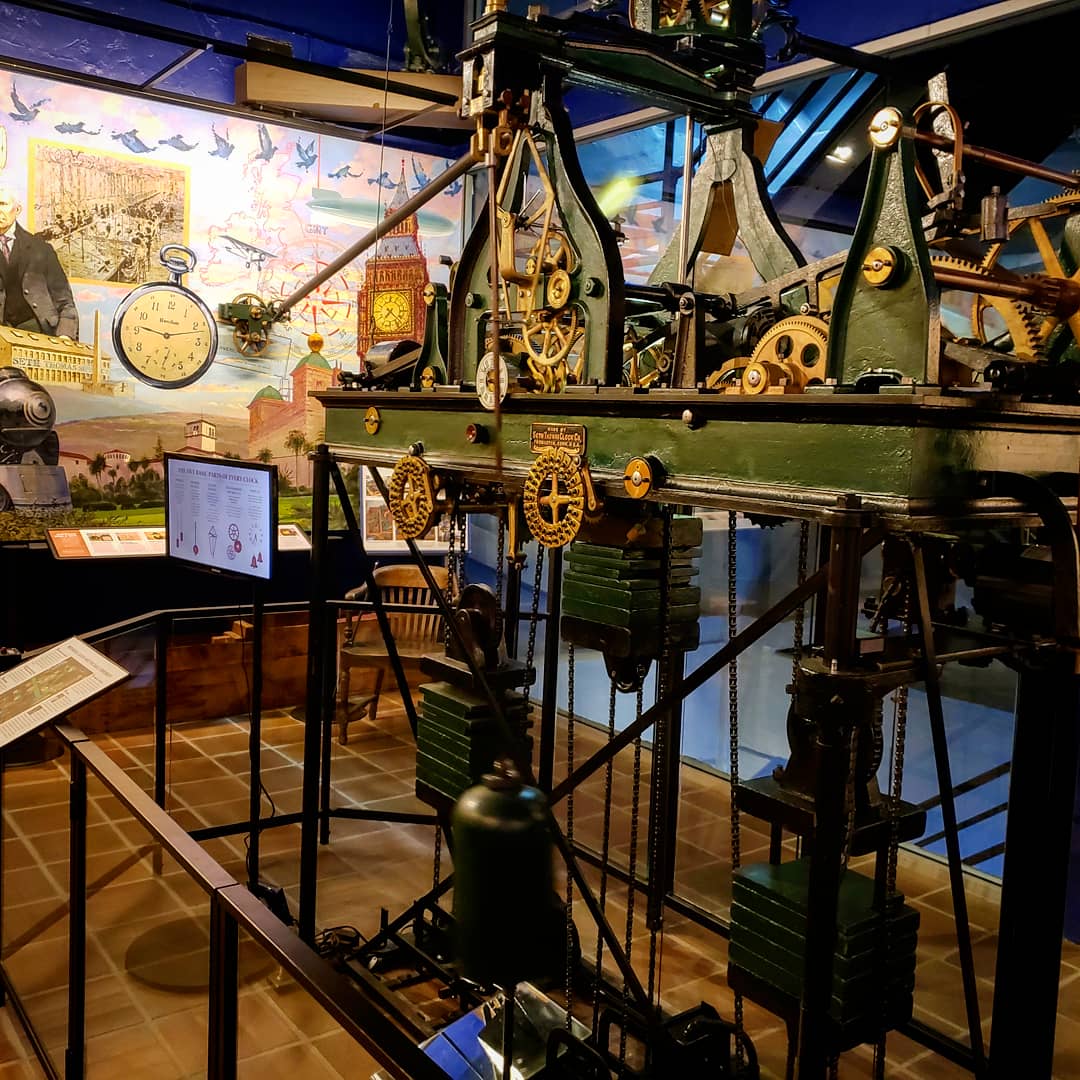 The 1929 Seth Thomas Tower Clock is the only one of which we are aware that “does its thing” within an exquisite gallery of horology accommodating easily and comfortably 25 visitors.
