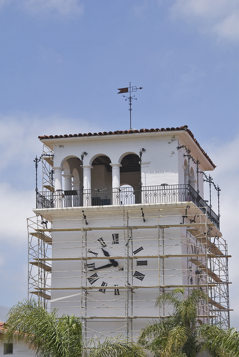 David Bisno, M.D., a retired ophthalmologist with an interest in the history of horology, was teaching a course entitled “It’s About Time” within the VISTAS Institute for Lifelong Learning for retirees in Santa Barbara during the winter of 2010. Sue Mellor, a Courthouse Docent and a student in David’s class, invited David, his wife, Fay, and a few of his students to come see the courthouse clock, hidden from the public behind plywood walls high up in the courthouse tower since 1929.