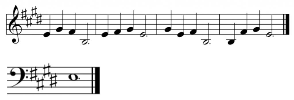 - e4, f♯4, g♯4, e4